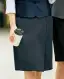 お尻をすっぽり包む股上深めシルエットだから、かがんでも安心。撥水&撥油、伸縮性があるから動きやすい。携帯電話・スマホのコードや鍵を引っ掛けられるループ付き。