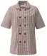 424-25 コックシャツワイドカラーの衿と袖口カフスをギンガムチェック柄にした衿付きコックシャツ。第一ボタンの黒ボタンをアクセントにした、比翼ボタン仕様です。シャツ感覚のカジュアルな着こなしのほか、モノトーンのシンプルなコーディネートも可能です。・アシンメトリーな打ち合わせ。・第一ボタンをアクセントにした比翼ボタン仕様。・左胸ポケット付き。・ラグラン袖。・裾口スリット入り。【交織アゼック】体温や室内外温度差に関係なく、常に爽やかな着心地の「新快適」素材です。混率や太さ(番手)の異なる紡績糸を「校倉造」のように立体的に配置することにより、優れた通気性と吸汗・速乾性を実現しました。