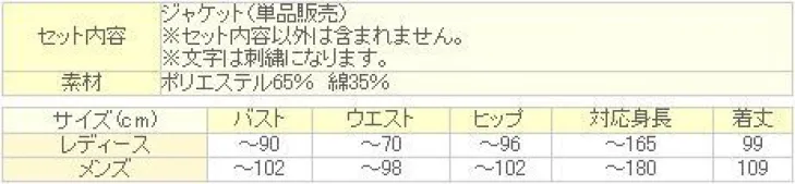 ■ポリエステル65%・綿35%: ■: ■【セット内容】ジャケット(単品販売)※セット内容以外は含まれません。 ※文字は刺繍になります。 【サイズの目安】バスト~102センチ、ウエスト~98センチ、ヒップ~102センチ、身長~180センチ 【着丈(出来上がりサイズ)】109センチ ※背中ロゴは「喧嘩上等」、胸ロゴは「天下無敵」となります: