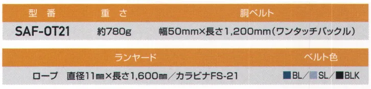 ※この商品は受注生産になります。 ■: ■重さ約780g: ■胴ベルト:幅50mm×長さ1200mm(ワンタッチバックル) ランヤード:ロープ 直径11mm×長さ1600mm/カラビナFS-21:
