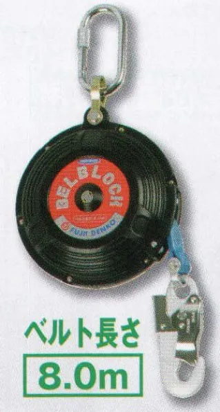 建設工事現場・梯子での昇降中の墜落事故を防止します。ケースは衝撃に強く、割れにくいように鉄板で補強したグラスファイバー入り樹脂を使用しています。昇降用。ベルト巻取り式。 ベルトの長さ8.0m 用途=建設工事、土木工事、鉱山、造船所、橋梁、その他一般高所作業。