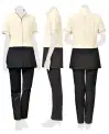 ■なめらかストレッチ(セオアルファ使用) ポリエステル100%: ■防透、制電、ストレッチ、撥水、撥油、防汚、吸汗、速乾: ■左胸・両脇ポケット、前ファスナー開き、後ろ裾ベンツ、胸ポケット内側共布ループ付き、背中心ボックスプリーツ: