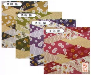 M-01 花あかりハンカチ パッチワーク 黒(10枚入り) 和柄デザインの大判ハンカチです。ハンカチとしてご使用いただくのはもちろんのこと、その大きさを生かして小風呂敷、また包装紙代わりに使えば、見た目もお洒落で再利用可能なので喜ばれること間違いなし!アイデア1つで何通りもの使い方ができる万能ハンカチです。 色鮮やかな伝統柄を多数そろえました。お土産やギフト、ノベルティーなどにもオススメです!