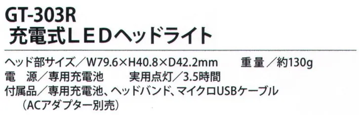 明るさ250ルーメン 周囲の明るさを感知し、自動で明るさを調節。 充電式(充電時間:約2.5時間) 2m落下耐久 防水・防塵規格IP66 80°可動式ヘッド レッドリアライト付き フォーカスコントロール 電源/専用充電池 実用点灯/3.5時間 付属品/専用充電池、ヘッドバンド、マイクロUSBケーブル(ACアダプター別売) ■: ■重量/約130g: ■W79.6×H40.8×D42.2mm: