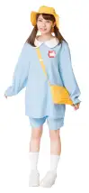 4560320881049 MENコス ようちえん 黄色い帽子とバッグがアクセントのようちえんコスチューム。名札付きの豪華5点セット!宴会、演劇、学園祭、ハロウィンなど使用シーンは様々。女性も着用OKです♪