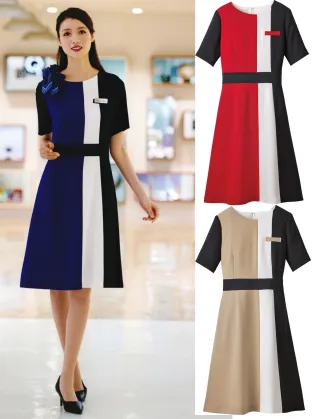 縦のラインを強調する3色のカラーブロックですっきり、さわやか 3色が互いに引き立て合うモダンな配色が華やぎの中にも大人の落ち着きを感じさせるワンピース。パネル切替えの視覚効果がスタイルアップも叶えます。