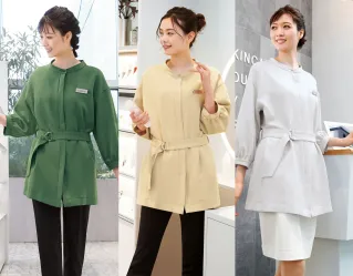 7736 チュニックドレス 女性の自然な美しさを引き出すデザイン 程よくゆったりとしたシルエットや、やさしいカラーに、ナチュラルな雰囲気が漂うコレクション。素材には、環境にやさしいエコ糸を使用した生地を用い、さらに制菌加工を施すなど、デザインの美しさだけではなく、今の時代に求められる安全性や快適さにもこだわりました。