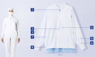 (6)本体袖口仕様:フライス 長時間の着用も快適で、体毛の落下を軽減。