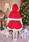 装飾部分の引っ掛かりや巻き込みに十分ご注意ください。保護者同伴でのご使用をお願い致します。装飾パーツを口に入れることの無いようご注意ください。就寝時のご使用はお止めください。※生産時期やロット、デザインによって、多少サイズ・色・柄が異なる場合があります。商品の特性上ファーの毛が抜けることがありますので、取り扱いにご注意ください。摩擦や水濡れにより色移りする恐れがありますのでご注意ください。商品画像は可能な限り実物の色に近づくよう調整しておりますが、お使いのモニター設定、お部屋の照明等により実際の商品と色味が異なって見える場合がございます。又、同じ商品の画像でも、撮影環境によって画像の色に差異が生じる場合がございます。 ■ポリエステル100%: ■洗濯不可、塩素系漂白剤による漂白不可、アイロン不可、ドライクリーニング不可※洗濯はお避けください。汚れは水で薄めた中性洗剤でタオル等を絞って拭き取って下さい。: ■【セット内容】フード付きケープ、ワンピース【対応サイズ】100/3~4歳目安、身長 95~105cm、B ~58cm、W ~50cm【メイン部分の長さ(着丈等)】ケープ25cm、ワンピース58cm【開き】ケープ/前リボン、ワンピース/背中心ファスナー【裏地の有無】無し: