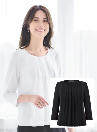 BCK7107 シフォン切替え七分袖ニット 四六時中、肌心地いい 肌触りの良さと機能性を追求した夏にうれしいカットソーが新登場。UVカット効果のあるエコ素材を使用し、アイロンいらずでお手入れも簡単。ずっと着ていたくなるような心地よさを実感してください。