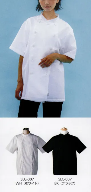 SLC-007 コックシャツ(半袖) 暑いキッチン環境や夏場でも快適に過ごすことのできる半袖タイプのコックシャツです。 ■ポリエステル65%・綿35%: ■: ■半袖:
