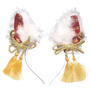 4560320909507 和柄カチューシャ 白狐 人気のモチーフに和モダンを落とし込んだ小物シリーズ。モチーフに合わせた和柄生地を使用し、素材や装飾にこだわりボリューム感とインパクトのある小物に仕上げました。外国人向けの手軽なお土産、和風コスチュームのアレンジやレンタル着物・浴衣に合わせるなど用途は様々。毛足の長いファーに耳中は桜を散らした落ち着いた色味の和柄生地を使用。フリンジ付きのねじり紐で作った金リボンに耳中には大きな鈴を付けました。また細いカチューシャ芯を使用することで耳が生えているように見えるのもポイントです。