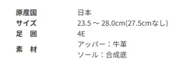 ・靴を休ませる お使いになった靴は1~2日休ませると長くご使用頂けます。 ご使用になった靴内は湿気が発生している為連続で使用するとまだ靴内に湿気が残ったままで使用する事となります。 靴内の湿気は細菌の増殖に繋がる為、衛生的な点からもしっかり乾燥させてご利用頂く事をお勧めいたします。 ■アッパー:牛革 ソール:合成底: ■GORE-TEXファブリクス 防水耐久性、透湿性を兼ね備え、足をドライな状態に保ちます。 日本製:自社の国内工場(福岡県久留米市)でつくられた製品です。 パラウォーターレザー 水をはじく特殊樹脂加工が施された高級皮革を採用しています。 セラミックソール 特殊ラバー+繊維状のセラミック粒子を配合した、耐滑性の高い靴底です。: ■足囲:4E エアーインソール かかと部のクッション材がポンプの役割を果たし、つま先へ空気を送ります。(取り外し可能) PUダイレクト 靴底の接着を高める「一体成型製法」で作られた、底が剥がれにくい製品です。: