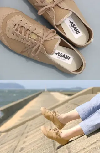 KF37032-A アサヒ 504 ベージ(17.0~22.5cm)華奢な雰囲気が可愛いぺたんこスニーカー 軽くて履きやすくシンプルなカジュアルスニーカーです。 オールドデザインな雰囲気とヌケ感を持ち、スタイルを選ばずデイリーユースにも活躍するアイテムです。 腰のあるしっかりとした素材でバトンシューズとしても重宝されています。