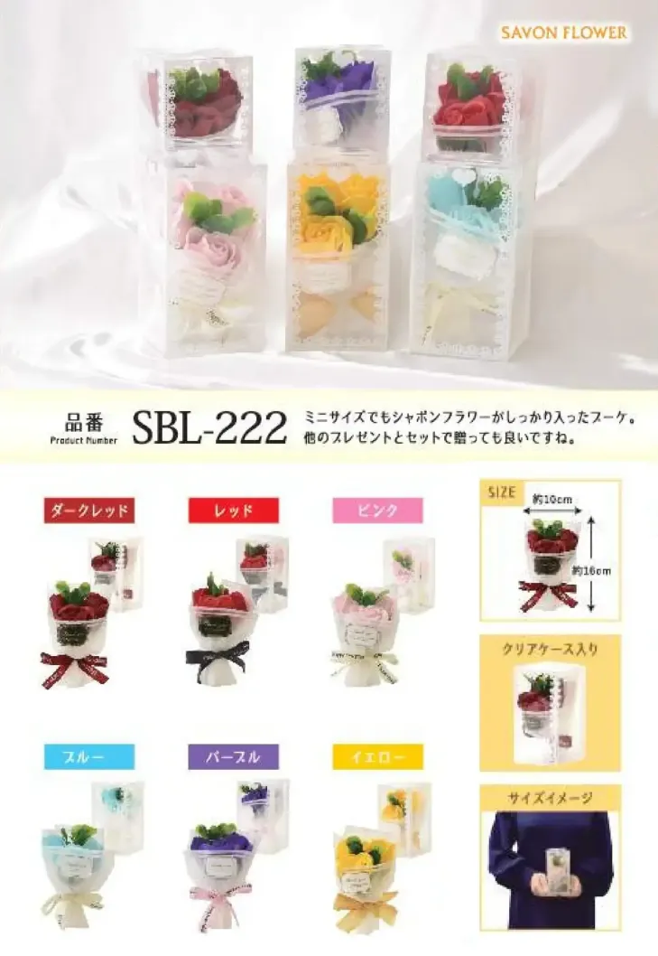 本物の花のような見た目で、石けん素材を使用しています。