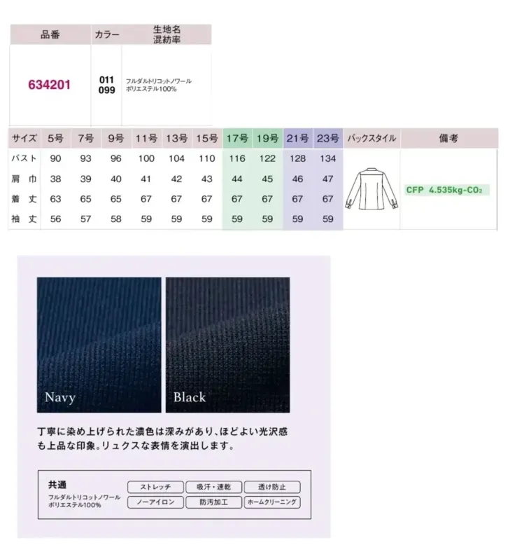 ・品番:634201・カラー:ネイビー(11)ブラック(99)