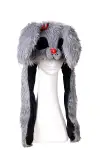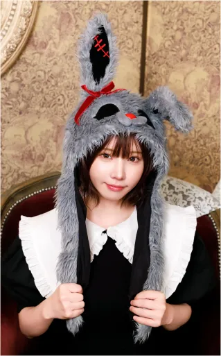 4560320913016 パタパタハット ホラーラビット ホラー×かわいいを融合させた、「コワカワ」うさぎをモチーフにしたアニマル帽子です。毛足の長いグレーファーを使用し、ボリューム感のある豪華な仕上がりに。赤い鼻とリボン、つぎはぎ風の耳中刺繍がダークで印象的なアクセントを加えています。左右の耳はエアポンプ内蔵で、手元の部分を押すことで耳がぴょこぴょこと上下に動く仕様。ひげ付きでキャラクター性を演出しつつ、リアルさもプラスしています。ユニセックス着用でき、ハロウィン仮装やSNS映えもバッチリ。