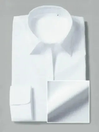綿55%・ポリエステル45%のハイブリッド素材を使用し、形態安定性とストレッチ性、吸水速乾性を高水準で両立した高機能モデルです。スノーホワイトの清潔感と軽い着心地が、オールシーズンのビジネスシーンで快適な着用体験を提供します。