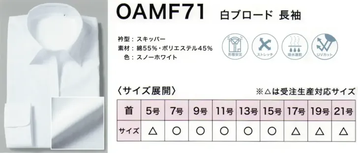 ・品番:OAMF70・カラー:スノーホワイト・サイズ:5号・7号・9号・11号・13号・15号・17号・19号・21号5号・17号・19号・21号は受注生産商品です。