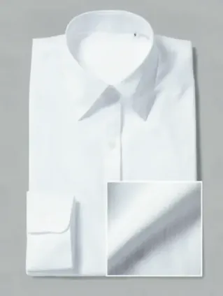 ・上品な光沢と表情をもつ白ドビー生地・洗濯後もシワになりにくい形態安定加工・屋外業務にも安心のUVカット機能・クセのないレギュラーカラーで幅広い制服に対応・綿とポリエステルのバランスで快適な着用感