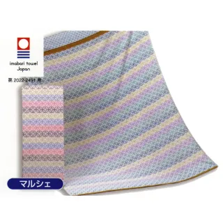 ・140×200cmのロングサイズでゆったり使える・やさしい色調のボーダーパターンが空間に馴染むデザイン・綿100%で肌ざわりが良く、季節を問わず使える・ジャカード織(糊抜き加工)による立体的な柄表現・寝具としてもリビング用の肌掛けとしても活躍・1枚袋入りで保管やギフトにも便利・安定した品質の日本製・今治タオル認定の信頼性。毎日の使用にも安心です。