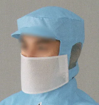 主にエレクトロニクス製造環境を中心とする“ICRゾーン”と、医薬品製造環境を中心とした“BCRゾーン”に対応するフード・キャップと組み合わせて使用するマスクのラインナップ。 頬部にマジックテープが付いているフードと組み合わせて使用。