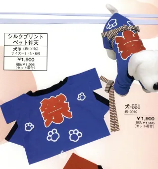 551 シルクプリントペット袢天 犬印(セット帯付) 祭 ■綿100%: ■: ■セット帯付: