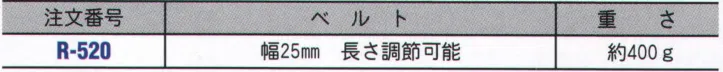 R-520 肩掛けベルトのみ(受注生産) 安全帯を肩から吊り下げますから、工具類が重くなっても腰への負担が少なく、また安全帯が下がらず、事故発生時の安全帯のすり抜け防止にも有効です。