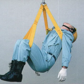 R-430 被災者吊上げベルト(簡易タイプ) 被災者を窒息や墜落の危険から守りつつ、ウインチ、ヘリコプター等で吊り上げます。装着は簡単で確実です。 簡易タイプの被災者吊り上げベルトです。