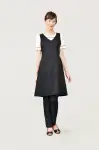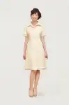 【なめらかストレッチ】 透けにくく、ストレッチ効果のある素材のため働く女性にぴったり。生地に使用している「セオアルファ」は、綿に比べ優れた吸水性と速乾性を有しています。また、フルダル糸を使用しているので、衣服内に光を通しにくく、淡い色で感じる下着の透けも軽減します。糸の一部に制電性繊維を使用しているので、静電気もおさえられます。素材表面と裏面にそれぞれの機能を発揮します。 ●表面:油・水に自信あり。表面に「撥水・撥油・防汚」加工が施してあるため優れた撥油性、撥水性を発揮し汚れを防ぎます。洗濯のすすぎを十分に行いアイロン掛けをすればいっそう効果は長持ちします。 ●裏面:汗に自信あり。肌に直接触れる面は、吸汗性と速乾性に優れています。異形断面と丸断面の繊維をランダムに配列した原糸を使用しており、毛細管現象で水分を取り込み発散します。そのため、汗をかいてもベタつかず、快適なサラサラのドライ感を実現します。 ■なめらかストレッチ(セオアルファ使用) ポリエステル100%: ■防透け 制電 ストレッチ 表面:撥水・撥油・防汚加工 裏面:吸油性・速乾性: ■サイズ:前中心丈78CM: