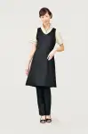 E-3097 エプロン着心地自慢のクールエプロン。後ろ全体をおおい、肩のずりおちがない快適な着心地が自慢。コーディネイトしやすいクールなデザインのエプロンです。撥水、撥油、防汚加工が施された高機能素材を使用。