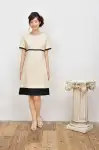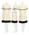 E-3110 ワンピース絶妙なバランスの美シルエットワンピース。袖口、ウエスト、裾にブラックを配した絶妙なバランスのフェミニンワンピース。高めのウエストラインによりスタイル美人を実現します。