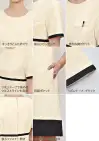 ネオクラシックのユニフォームはこだわりの高機能素材を使用しています。 【なめらかストレッチ(セオアルファ使用)】 「なめらかストレッチ」は、透けにくく、ストレッチ効果なおる素材のため、働く女性にぴったりです。生地に使用している「セオアルファ」は綿に比べ優れた吸汗性と速乾性を有しています。また、フルダル糸を使用しているので、衣服内に光を通しにくく、淡い色で感じる下着の透けの不安も軽減します。糸の一部に制電性繊維を使用しているので、静電気もおさえられます。素材表面と裏面にそれぞれの機能を発揮します。 ■表面:油・水に自身あり。表面に「撥水・撥油・防汚」加工が施してある為、優れた撥水性、撥油性を発揮し、汚れを防ぎます。洗濯のすすぎを十分に行いアイロン掛けをすれば、一層効果は長持ちします。 ■裏面:汗に自信あり。肌に直接触れる面は、吸汗性と速乾性に優れています。異形断面と丸断面の繊維をランダムに配列した原糸を使用しており、毛細管現象で水分を取り込み発散します。そのため、汗をかいてもベタつかず、快適なサラサラのドライ感を実現します。 ■なめらかストレッチ(セオアルファ使用) ポリエステル100%: ■防透け、制電、ストレッチ 表面:撥水、撥油、防汚加工 裏面:吸水性、速乾性: ■左胸・両脇ポケット付。 後ろファスナー開き。:
